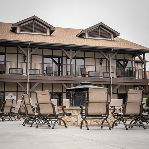 Standing tall atop the hillside running through Hunt Village sits the Main Lodge. The focal point of our lodging facilities, the Main Lodge has 40 rooms, furnished with two queen beds and stunning views. This is one of the only hotels you will sleep in that comes equipped with a gun rack in each room. Since Flint Oak is a true getaway experience, you will not find TV's in the Main Lodge rooms, allowing you to capitalize on your experience at the ranch.