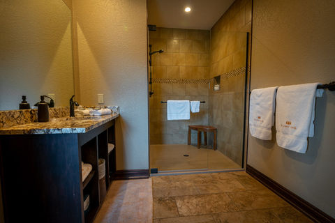 Exquisitely built, and luxuriously furnished, the Over & Under Lodge has it all. Built in 2016, this Lodge has seven spacious rooms appointed with king size beds, oversized walk-in showers, mini fridges, flat screen TV’s and all of the comfortability you could ask for. Appropriately named, the Over & Under Lodge has an upper and lower level.